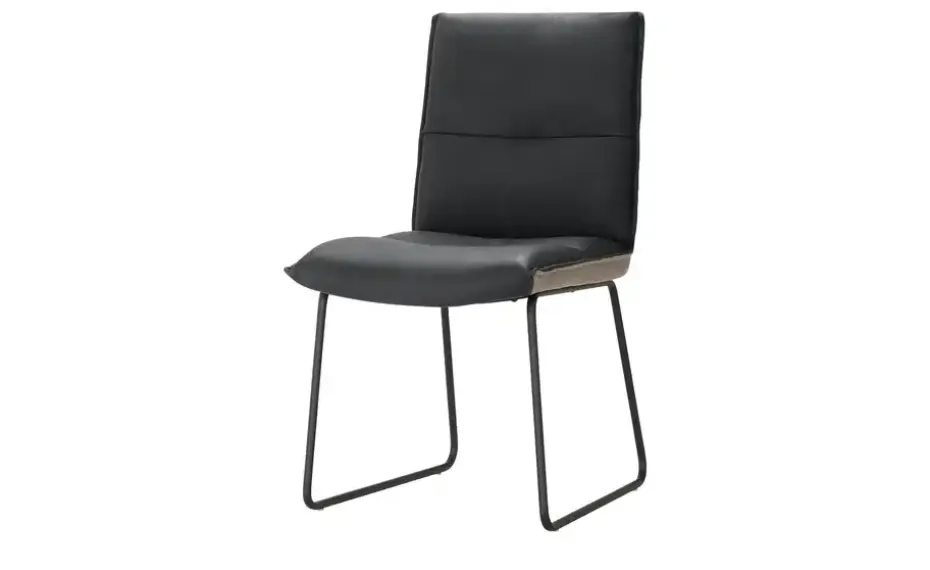 Der Leder-Kufenstuhl Essay strahlt moderne Eleganz aus. Mattschwarze Rundrohr-Kufen aus robustem Metall sorgen für einen stabilen Stand und ein schwereloses, luftiges Design. Der Sitzbereich ist komfortabel gepolstert und auf der Innenseite mit einem hochwertigen Echtlederbezug bezogen. Für die Außenseite wurde ein strapazierfähiges Flachgewebe in Filz-Optik verwendet. Dadurch entsteht ein optischer und haptischer Kontrast, der für ein modernes Ensemble sorgt. Dezente Absteppungen und eine dekorative Kedernaht geben dem Kufenstuhl Essay zusätzliche liebevolle Details. Dank seiner Sitzhöhe von ca. 48 Zentimetern passt der Markenstuhl an zahlreiche gängige Esstische. Unser Tipp: Kombinieren Sie den Kufenstuhl Essay zum gleichnamigen Esstisch oder der Rundbank der Serie. So erschaffen Sie eine stilsichere Essgruppe für Ihr Wohnzimmer oder Ihre Küche. Unikate gefertigt in Bayern: Die Marke KOINOR steht für einzigartige Komfortfunktionen und individuelles Design. Unter Verwendung hochwertigster Materialien entstehen Möbel mit Vorzeigecharakter.