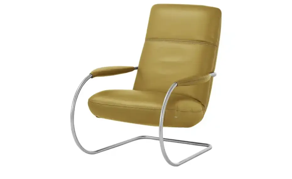 Der Sessel Jacy von KOINOR präsentiert sich in moderner Eleganz und vereint Ruhe und Dynamik. Durch das verspielte Designgestell in attraktiver Edelstahl-Optik besitzt der Freischwinger-Sessel einen besonders langen Federweg. Der Bezug aus hochwertigem Echtleder ist mit liebevollen Details versehen, welche dem Sessel eine zierliche Eleganz verleihen. Die dekorative Doppelnaht und zwei Armlehnen mit flacher Auflagefläche veredeln das Gesamterscheinungsbild gekonnt. Durch das bewegliche Kopfteil und die dicke Polsterung genießen Sie höchsten Komfort. Unser Tipp: Kombinieren Sie den Sessel mit dem gleichnamigen Hocker Jacy, um nach einem langen Tag die Füße entspannt hochzulegen.Unikate gefertigt in Bayern: Die Marke KOINOR steht für einzigartige Komfortfunktionen und individuelles Design. Unter Verwendung hochwertigster Materialien entstehen Möbel mit Vorzeigecharakter.