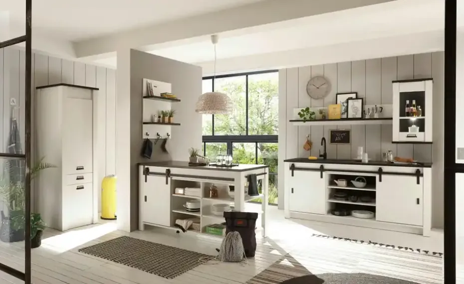 Spültisch, Kücheninsel, Wandregale, Hängeschrank, Küchen-Hochschrank