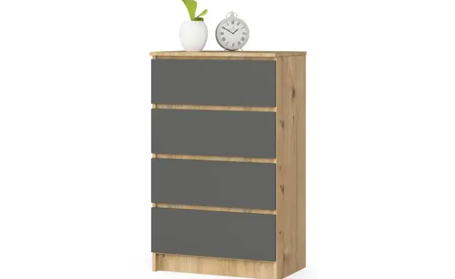 Kommode mit 4 Schubladen Kai | Eiche Artisan (Nachbildung), Graphit