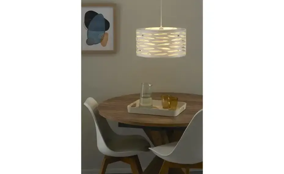 levelone Pendelleuchte, 1-flammig, Schirm weiß mit Stanzungen