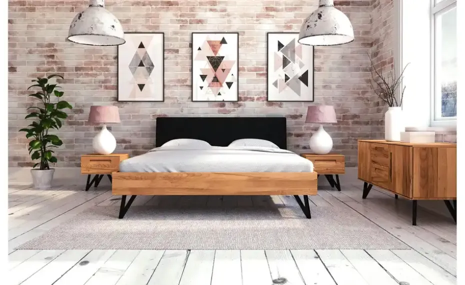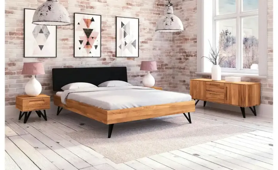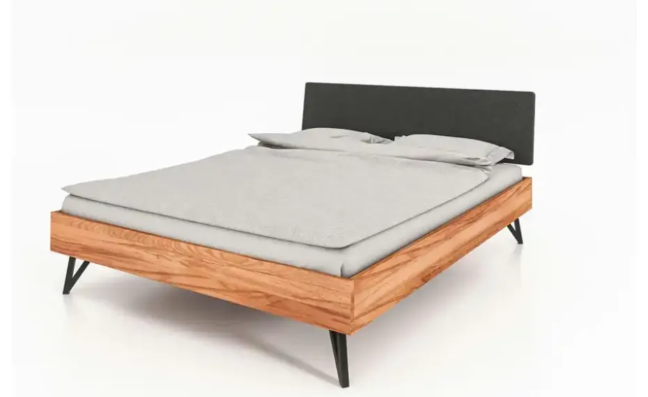 Massivholzbett mit gepolstertem Kopfteil Karl