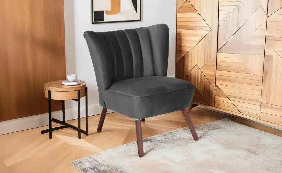 Dieser Sessel verleiht jedem Raum das gewisse Etwas.Die Steppung im Rücken macht den Sessel zu etwas Besonderem und wirkt elegant. Die dunklen Füße sind zur einfachen Selbstmontage.