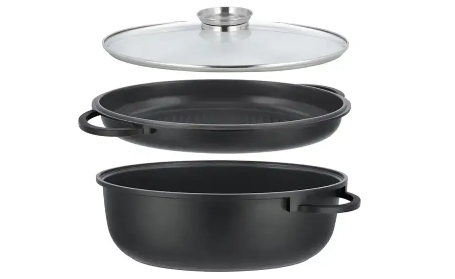 3-teilig inklusive Pfanne, Deckel und Grillpfanneneinsatz