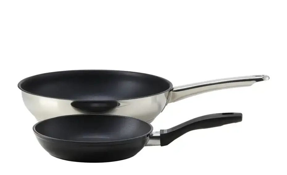 Bestehend aus einer Edelstahlpfanne Ø 28cm und einer Aluminiumpfanne Ø 20cm