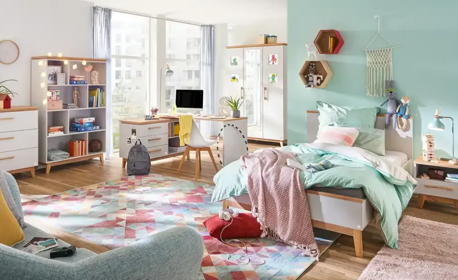 Die Kinderserie Tilda überzeugt durch ihr helles, freundliches Design. Modernes Lichtgrau wird hier mit natürlichen Akzenten aus Goldeichen-Nachbildung und massivem Eichenholz kombiniert. Diese Kommode passt in verschiedene Raumkonzepte. Ob als Stauraum für Babykleidung, Spielzeugschrank Ihres Kleinkinds oder als praktischer Stauraum in Jugend-, Wohn-, oder Arbeitszimmer: Die drei geräumigen Schubfächer lassen sich vielseitig bestücken. Übrigens: Dank zeitgemäßem Soft-Close schließen die Schubfächer nahezu lautlos.