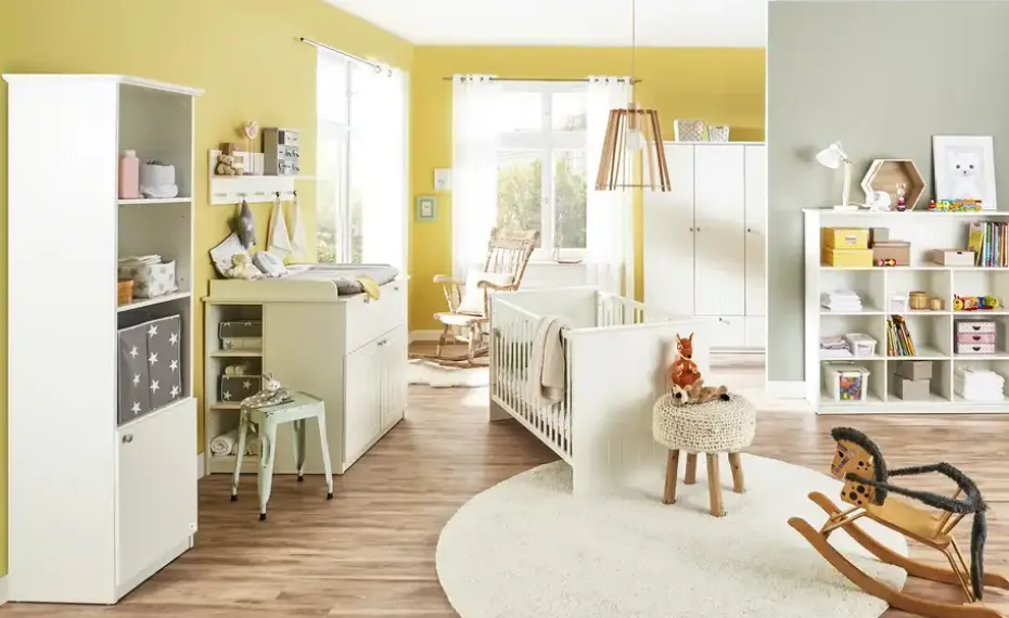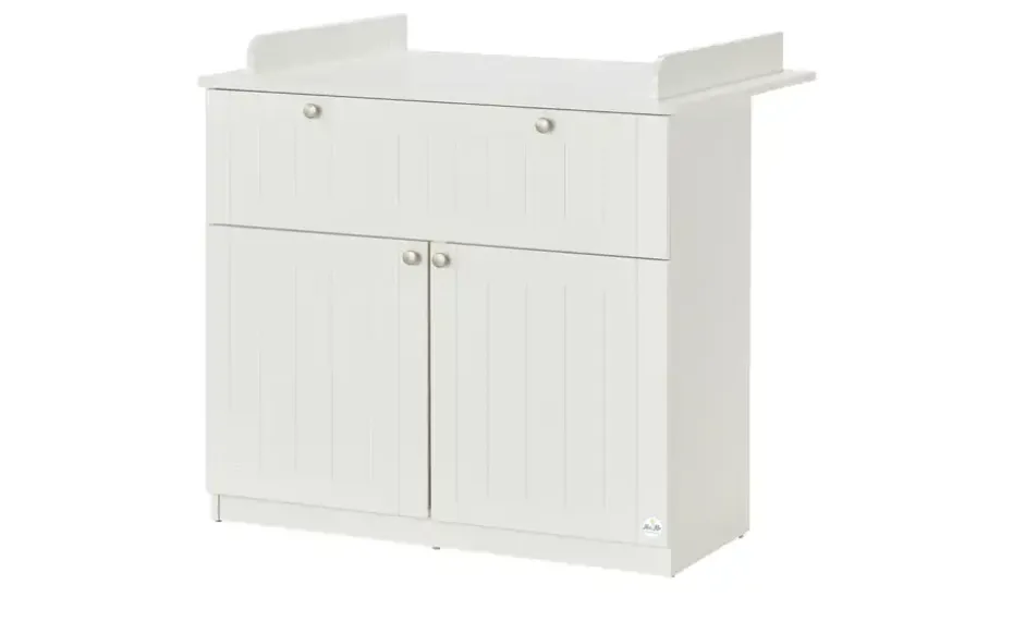 Bei dieser Möbelserie wird zeitloses Weiß mit liebevollen Akzenten kombiniert. Das Ergebnis: Kombinationsfreudige Möbel, die in nahezu jeden Einrichtungsstil passen. Durch vertikale Lamellen an sichtbaren Flächen bekommt die Serie eine attraktive Landhaus-Note. Diese Wickelkommode stellt Ihnen praktischen Stauraum zur Verfügung. Zwei große Fächer und ein geräumiges Schubfach helfen Ihnen beim Ordnunghalten. So findet alles seinen Platz. Mit der mitgelieferten Wickelauflage verwandeln Sie die Kommode im Handumdrehen in einen Wickeltisch. Übrigens: Die Türen und das Schubfach schließen dank zeitgemäßem Soft-Close lautlos. Sie benötigen mehr Stauraum? Mit dem separat erhältlichen Unterstellregal der Serie erweitern Sie die Kommode gekonnt um praktische Fächer.
