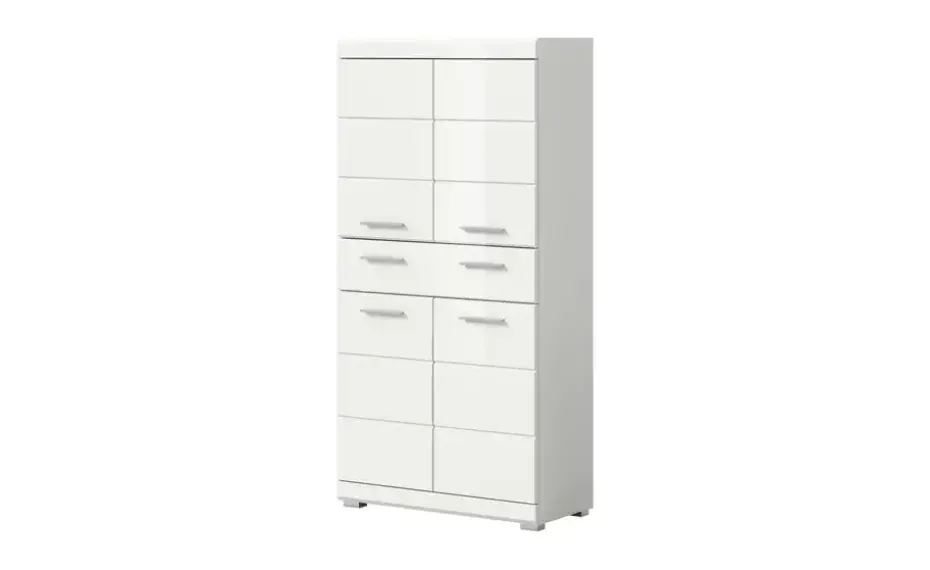 Midischrank SCHLOONSEE, Breite 74cm, 4 Türen, 1 Schubkasten, 4 Fächer, MDF-Front, in verschiedenen Farben erhältlich, Badmöbel, Badschrank, Schrank, Bad Schloonsee | Weiß, hochglanz
