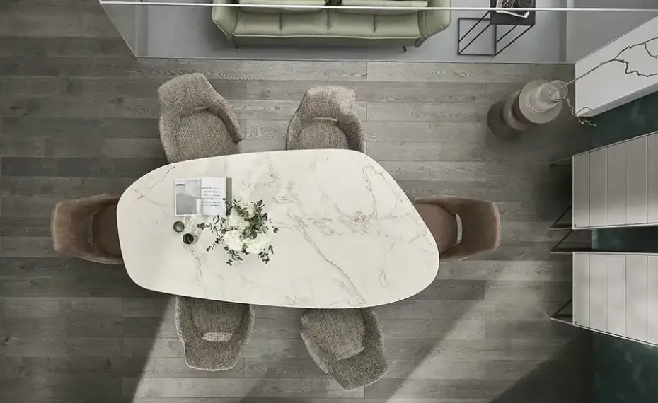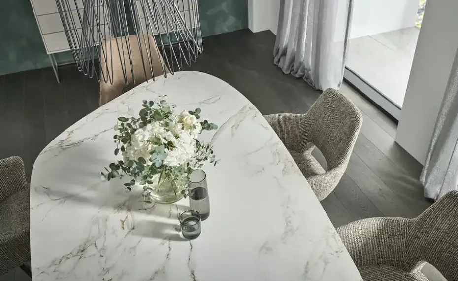 Tischplatte aus Dekton in Entzo (Weiß Marmoroptik)
