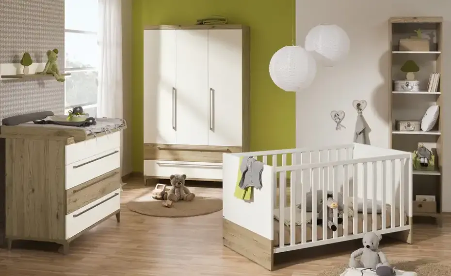 Vom Strampler bis zur Windel gibt es viele Dinge, die ein Baby benötigt. Im Kleiderschrank Remo von PAIDI ist viel Stauraum für Kleidung und vieles mehr. Durch die gute Aufteilung des Stauraumes herrscht Ordnung im Schrank. Neben den drei Türen verfügt Remo über zwei praktische Schubladen. Der Schrank ist hochwertig gearbeitet. Alle Oberflächen verfügen über eine Melaminbeschichtung. Sie zeichnet sich durch ihre Unempfindlichkeit aus. Der Korpus des Schrankes hat ein natürlich wirkendes Dekor in Eiche Bordeaux (Nachbildung). Die Front ist größtenteils kreideweiß. Eine Absetzung in Eiche Bordeaux (Nachbildung) greift die Optik des Korpus wieder auf.