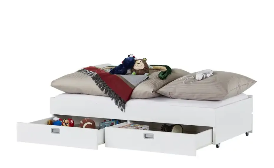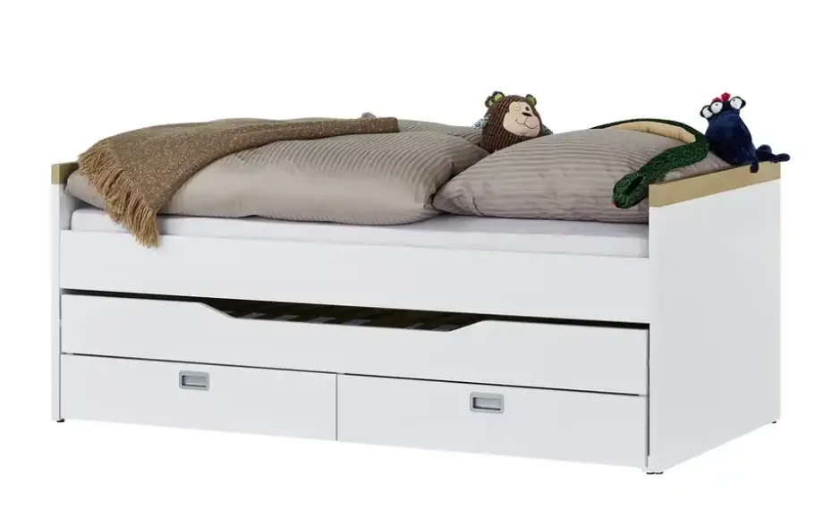 Bettgestell und Absetzung aus Spanplatte, melaminbeschichtet
