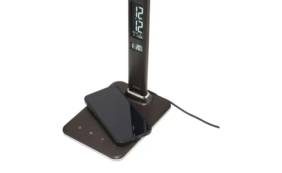 Diese multifunktionale Schreibtischleuchte zeigt auf ihrem Display einen Kalender, die Uhrzeit und die Temperatur an. Außerdem kann sie über den 5-Stufen-Touchdimmer kinderleicht in ihrer Helligkeit verstellt werden. Der Clou: Die Schreibtischleuchte besitzt eine Induktionsladefläche, auf der Sie Ihr Handy aufladen können.