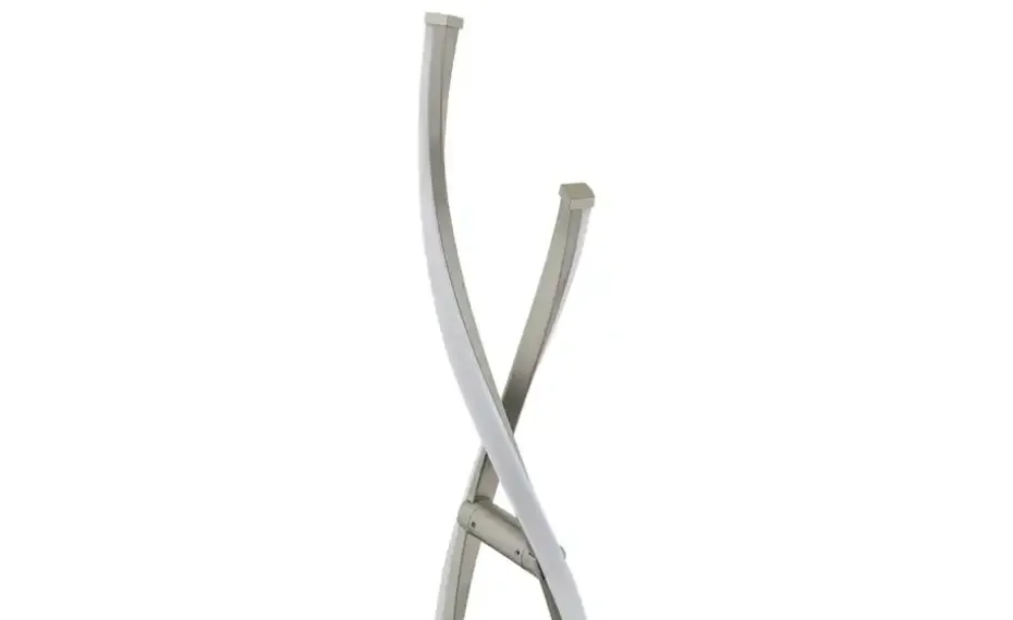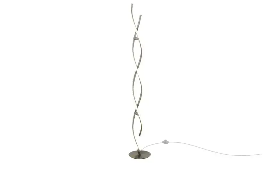 Diese ineinander geschwungene Stehleuchte ist ein absoluter Hingucker. Sie ist aus Metall gefertigt und besitzt zwei Leuchtmittel, die in einem wohnlichen Warmweiß leuchten. Platzieren Sie die Stehleuchte als indirekte Beleuchtung in einer Ecke, oder setzen Sie die Leuchte bewusst als dekoratives Element in Szene.