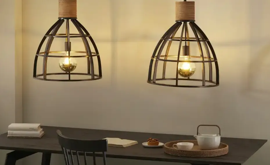Pendelleuche, 2-flammig, schwarz/holzfarben