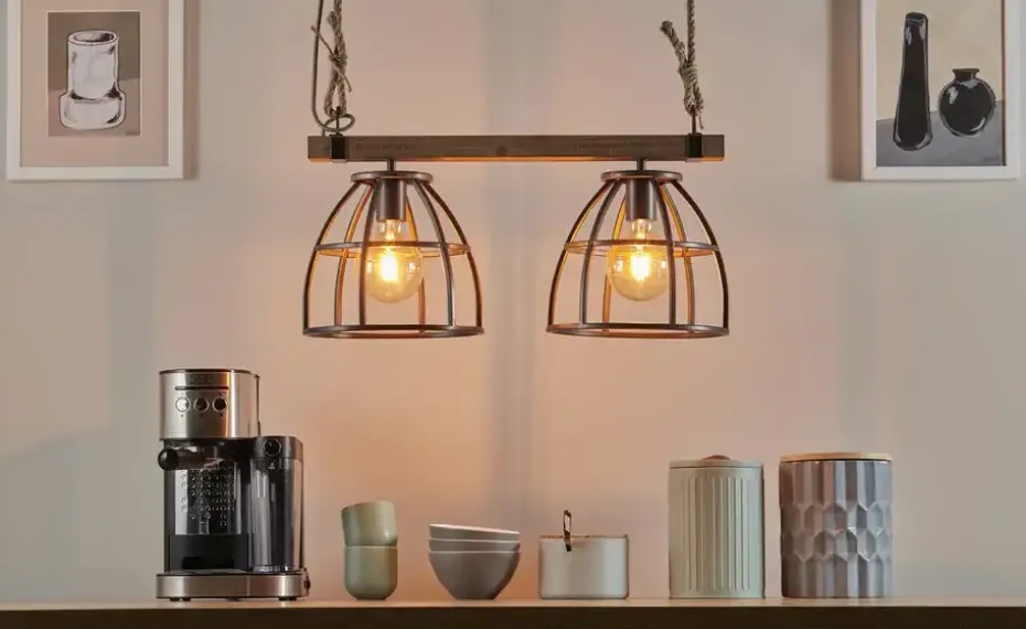 Pendelleuchte, 2-flammig, schwarz/holz | Möbel Höffner