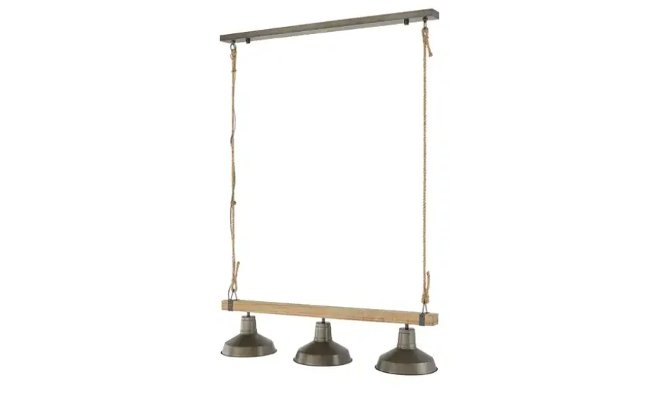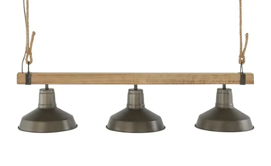 Pendelleuchte, 3-flammig, schwarz/Holz mit Tau