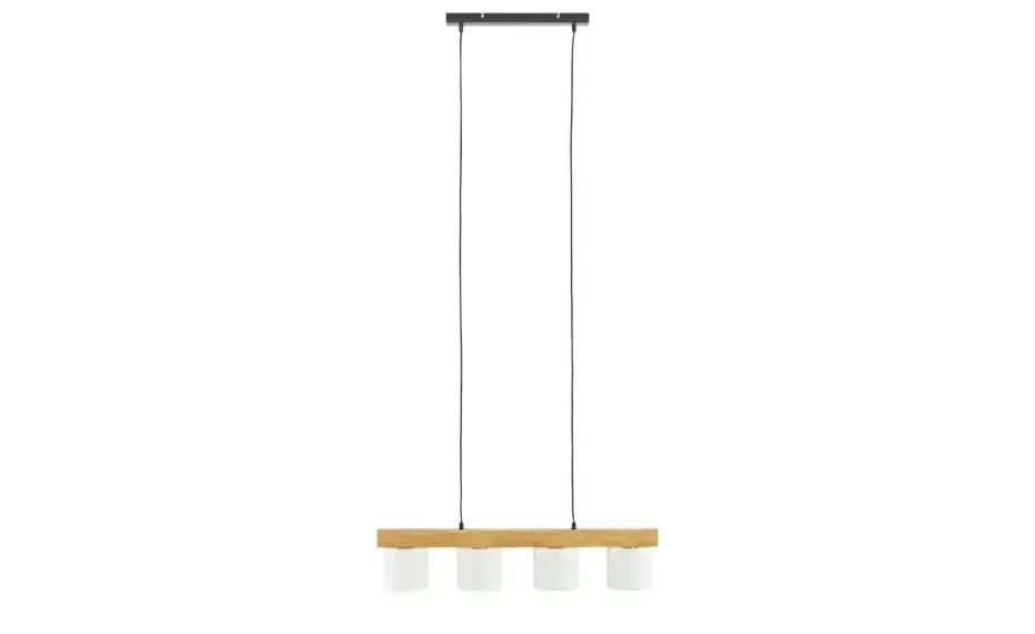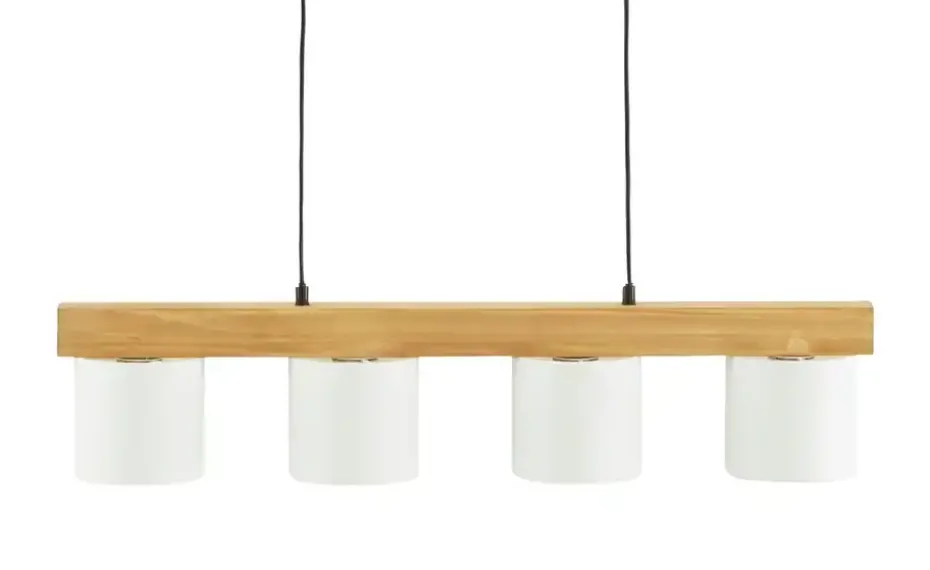 Pendelleuchte, 4-flammig, Holz/ Stoffschirm weiß | Weiß