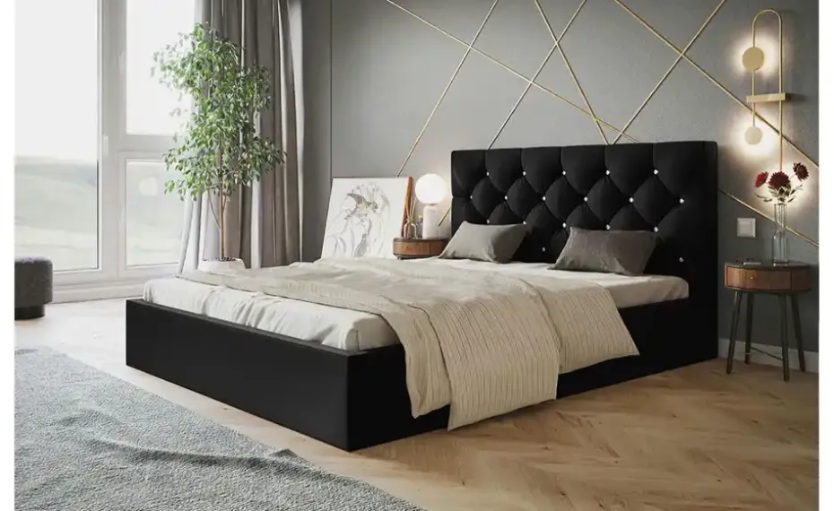 Polsterbett mit Stauraum Southam | 140×200 cm, Schwarz
