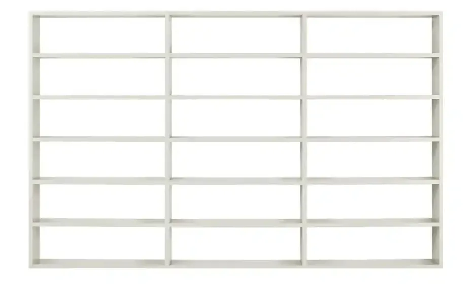 Mit seiner Breite von knapp 360 Zentimetern bietet das Regal Booker jede Menge Platz. Er teilt sich in 18 geräumige offene Fächer auf. Hier lassen sich Bücher, Ordner oder sogar Ordnungsboxen unterbringen. Booker macht sich somit im Wohn- oder Arbeitszimmer gut. Dank des neutralen, geradlinigen Designs passt Booker zu vielen Einrichtungen. Der schöne Weißton wird durch ein mattes Finish akzentuiert.