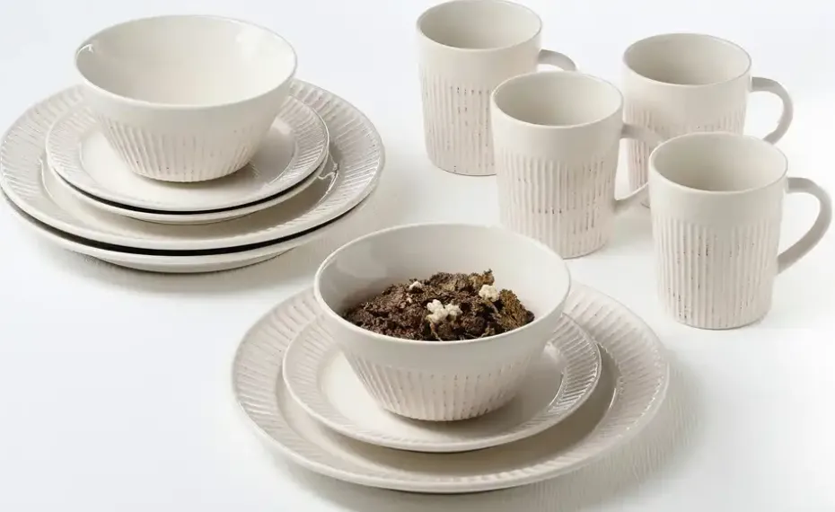 Enthält je 4 Kaffeebecher, Müslischalen, Speiseteller und Dessertteller