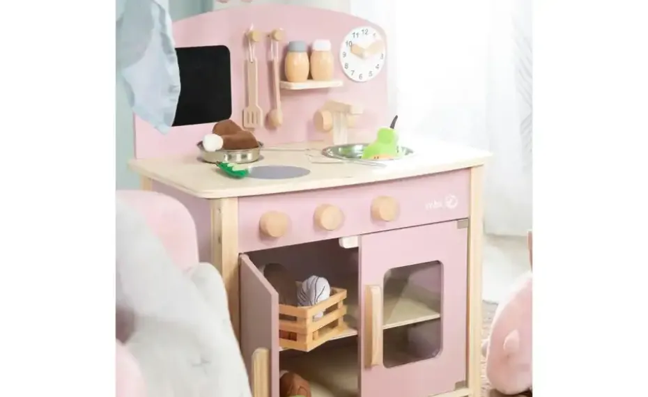 Die roba Spielküche ist ein wahres Platzsparwunder. Dennoch kommen kleine Nachwuchsköchinnen und -köche voll auf ihre Kosten. Denn ein wahres Kochtalent entfaltet sein Können selbst in einer kleinen Kinderküche.Die Kinderküche besitzt einen Herd mit zwei Kochstellen, einen Backofen mit Tür, ein Schränkchen und eine Spüle inkl. Wasserhahn mit 2 Deko Knöpfen.Durch das durchsichtige Fenster am Backofen kann Ihr Kind das Bratgut oder den Kuchen im Auge behalten. Mithilfe der Uhr und deren drehbaren Zeigern, wird auch das Lernen von Uhrzeiten spielerisch gefördert.Die geräumige Spielzeugküche inklusive Schrank und diversen Aufhängungsmöglichkeiten bietet jede Menge Stauraum. So finden Kaufladen-Lebensmittel und das mitgelieferte umfangreiche Küchenzubehör in der Spielzeug-Küchenzeile ihren Platz.Dem sofortigen Spielstart steht also nichts mehr im Wege! Die Kinderspielküche wird zerlegt geliefert. Die Montage ist kinderleicht. Die roba Spielküche wurde nach der europäischen Sicherheitsnorm für Spielzeug EN 71 in Deutschland entwickelt.