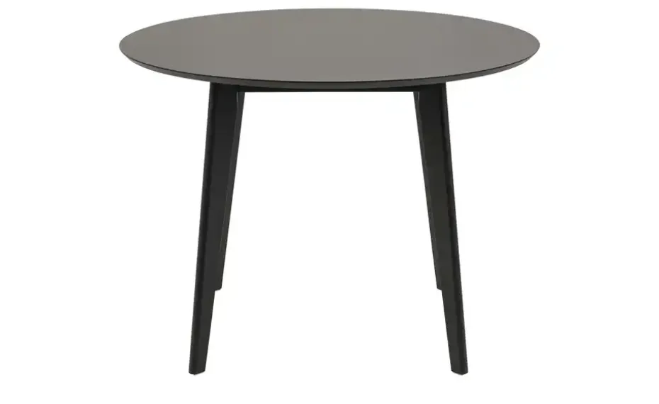 Komplett in schlichtem Schwarz gehalten, fügt sich der Esstisch Robin in nahezu alle Einrichtungsstile problemlos ein. Die runde Tischplatte besitzt einen Durchmesser von 105 Zentimetern und bietet bequem für vier Personen Platz. Das Tischgestell mit den vier Beinen ist aus Massivholz und damit besonders robust. Alle Oberflächen sind lackiert, sodass Sie Flecken ganz leicht abwischen können.