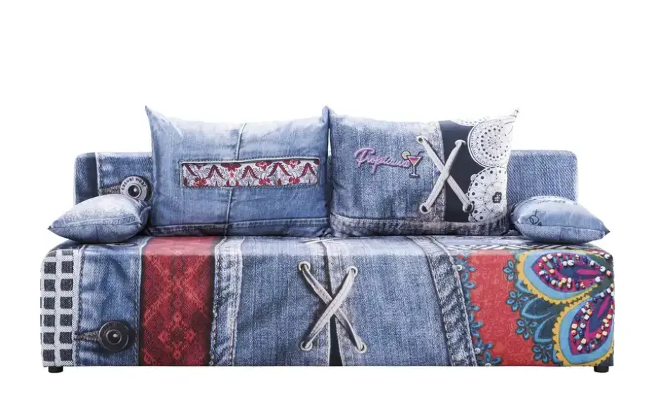 Schlafsofa Denny Premium | Denimblau, mehrfarbig, Erweiterte Funktion