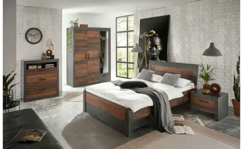 Nachtschrank, Kommode, Kleiderschrank, Bettgestell mit Kopfteil