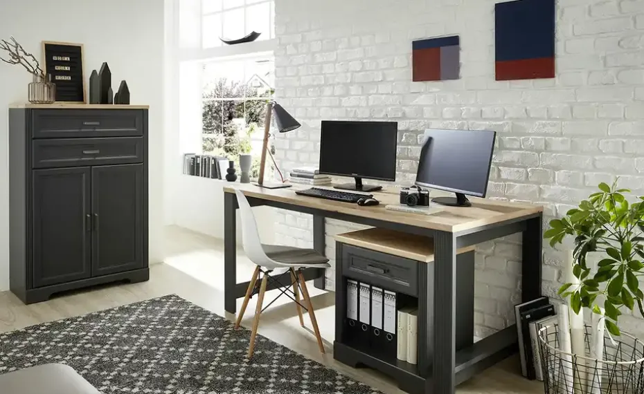 Schreibtisch Varese | Graphit, Asteiche (Nachbildung)
