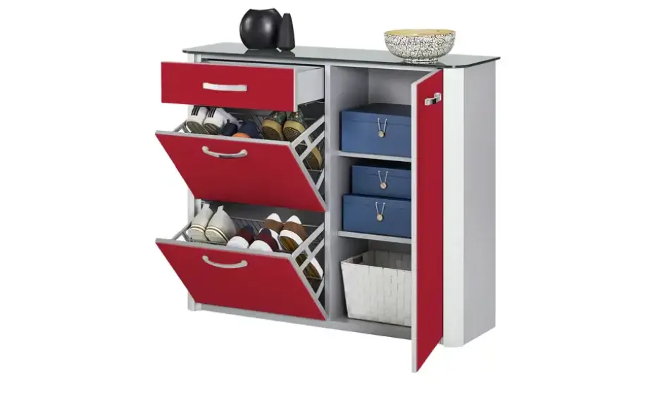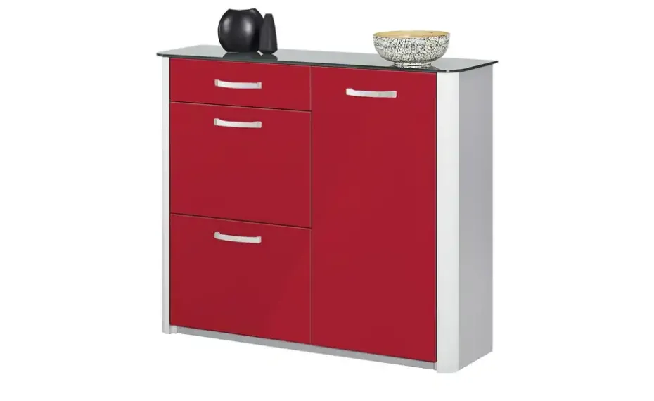 Schuhschrank Juno | Rot, Aluminiumgrau | Möbel Höffner