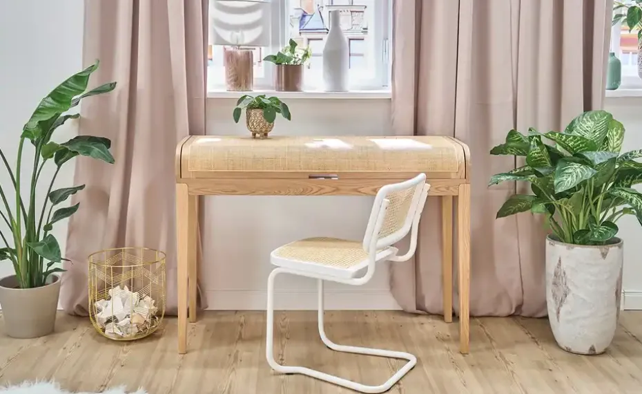 Der Schwingstuhl Manuel kombiniert das traditionelle Wiener Geflecht mit einem modernen Schwingstuhl-Gestell. Das Peddigrohrgeflecht ist von einem hellen Buchenrahmen umgeben und bildet die Sitzfläche und Rückenlehne. Das elegant geschwungene Metallgestell sorgt für einen stabilen Stand und ermöglicht ein komfortables Sitzgefühl. Den Schwingstuhl Manuel gibt es wahlweise auch mit Armlehnen aus hell lackiertem Buchenholz: Entscheiden Sie sich ganz einfach für Ihre Lieblingsvariante oder kombinieren Sie die Stühle für eine aufgelockerte Sitzgruppe.