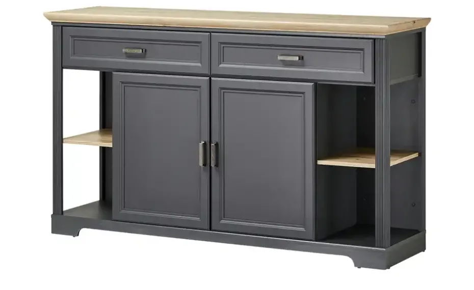 Dieses Sideboard im attraktiven Landhausstil kann in Küche, Ess- und Wohnzimmer platziert werden. Vier offene Fächer bieten Platz für Deko, Geschirr oder Aufbewahrungsdosen. Blickdichten Stauraum gibt es in zwei Schubfächern und vier Fächern hinter zwei Türen. Gut zu wissen: Türen und Schubfächer schließen dank zeitgemäßem Soft-Close besonders leise.
