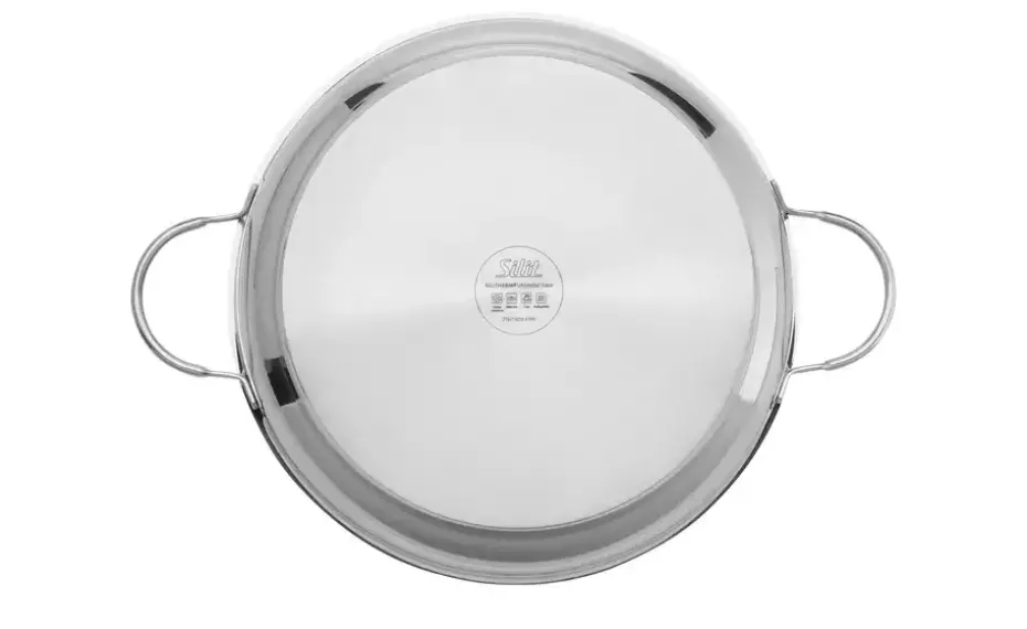 Robuster Edelstahl außen, komfortable Antihaftversiegelung innen: die große Servierpfanne Calabria von Silit weiß im Küchenalltag absolut zu überzeugen. Die Bratpfanne verfügt über die 3-lagige und langlebige Silitan Antihaftversiegelung, die beim Braten nichts anbrennen lässt und dazu für eine mühelose Reinigung sorgt.