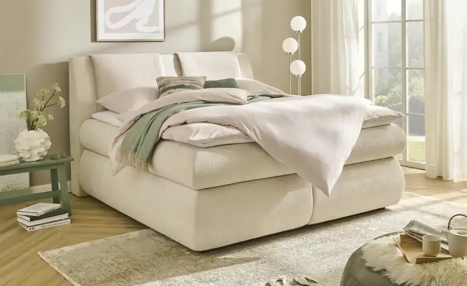 smart Boxspringbett mit Stauraum Premium | Weiß, Creme, 180 cm