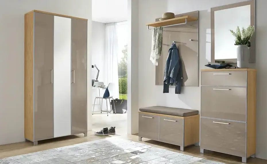 Ergänzen Sie die Garderobenserie Duna mit diesem passenden Spiegel. Die große Spiegelfläche wird von einem Farbglas in Taupe abgesetzt. Der Rahmen ist aus pulverbeschichtetem Metall und alufarben. Duna ist hochwertig gearbeitet und bietet Qualität Made in Germany.