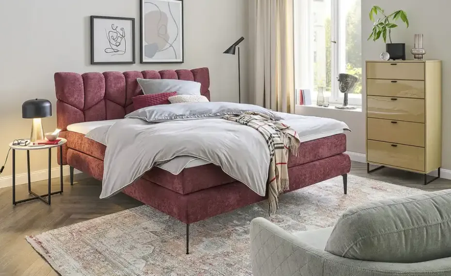 switch Boxspringbett Bari | 180 cm, Bordeauxrot