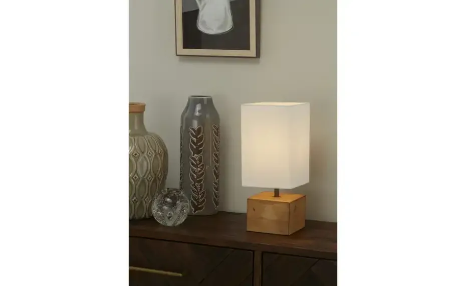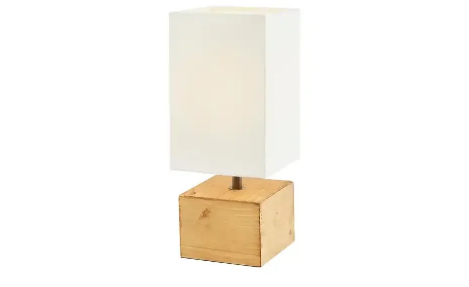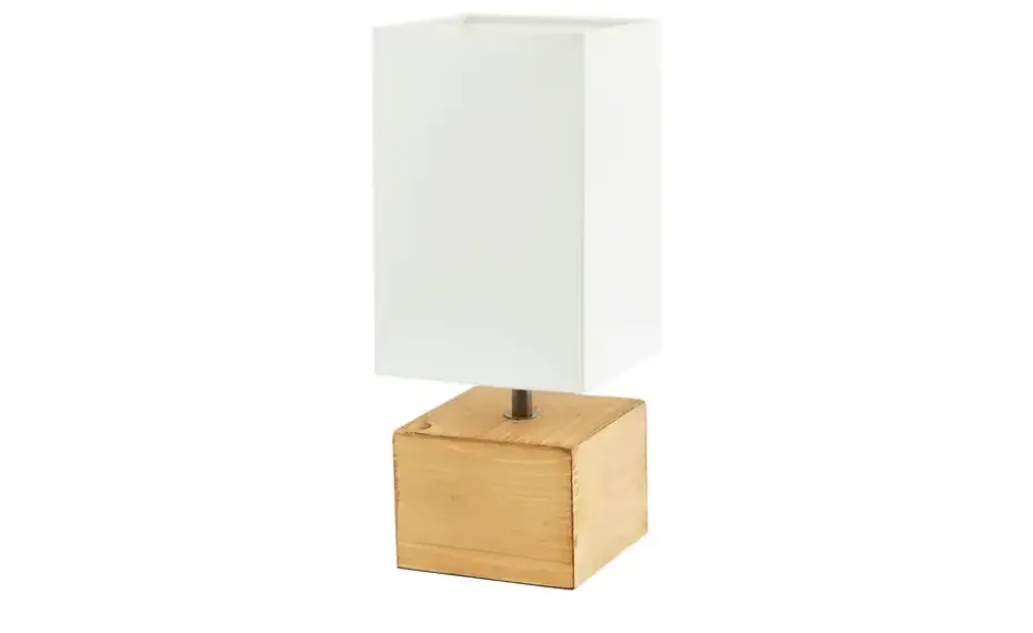 Tischleuchte, 1-flammig, Holz/ Stoffschirm weiß