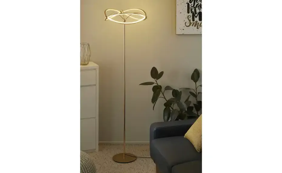 Trio LED-Stehleuchte, messing-matt, geschwungen | messingfarben, matt