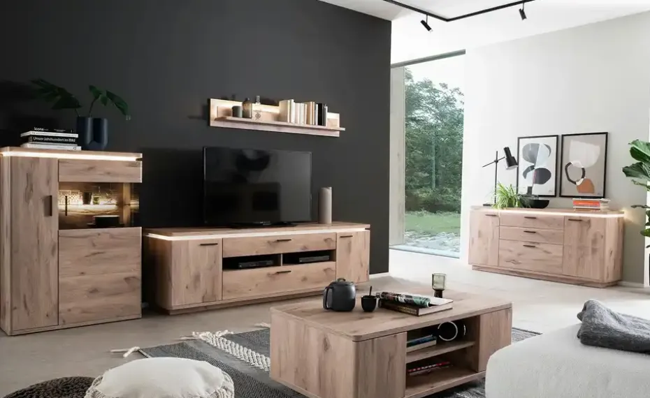 Sichtbare Rückwand aus Holzwerkstoff sandgestrahlt in Viking Oak 3D-Optik (Nachbildung)