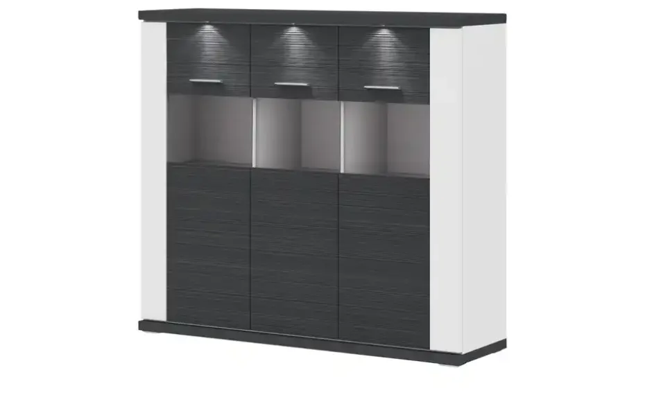 uno Highboard Titan | Graphit, Weiß, Spotbeleuchtung