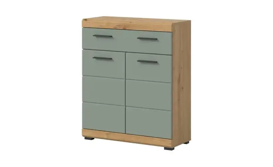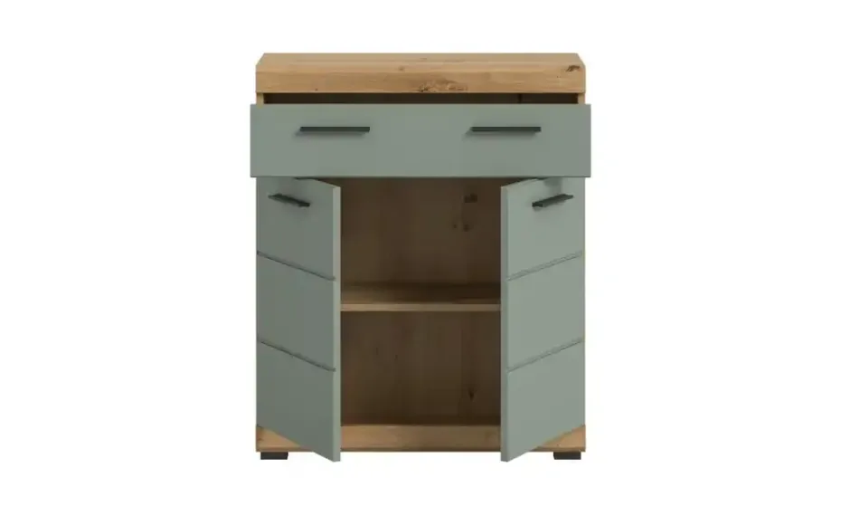 Unterschrank SCHLOONSEE, Breite 74cm, 2 Tür, 1 Schubkasten, 2 Fächer, MDF-Front in verschiedenen Farben erhältlich, Badmöbel, Badschrank, Kommode, Bad Schloonsee | Eiche Artisan (Nachbildung), Salbeigrün