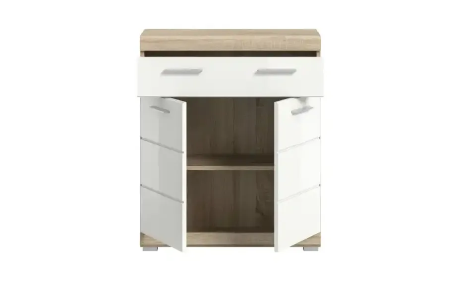 2 Türen, 1 Schubkasten, 1 höhenverstellbarer Einlegeboden, 2 Fächer