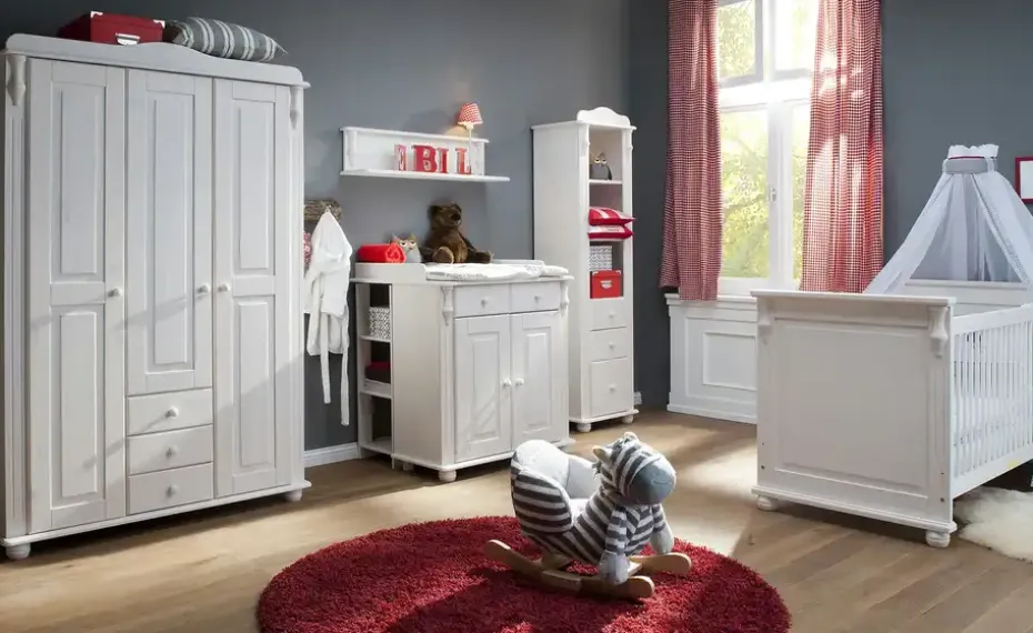 Dieses weiß gewachste Regal aus Kiefernholz schafft unter der Wickelkommode zusätzlichen Stauraum. Dafür stehen drei Böden zur Verfügung, so das sie die zum Wickeln benötigten Utensilien stets griffbereit vorfinden.