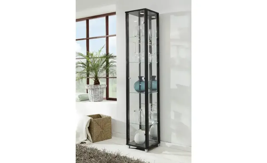 Vitrine Cristal | 1 Stück, Schwarz, transparent, Dunkelbraun