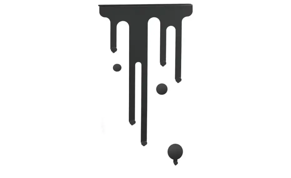 Das Kleiderhaken-Set Young Users von VOX hat ein tolles Design. Es erinnert an laufende Tinte. Das Set besteht aus vier Teilen. Das große Element wird an die Möbelfronten gehängt. Hinzu kommen drei selbstklebende Punkte. Einer davon mit Haken.
