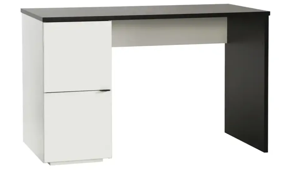 Cool designt in Schwarz und Weiß ist der Schreibtisch Young Users. Die Tischplatte und die Gestellwange sind schwarz. Container und Blende sind weiß. Hinter der großen Tür stehen Ihnen zwei Fächer zur Verfügung.