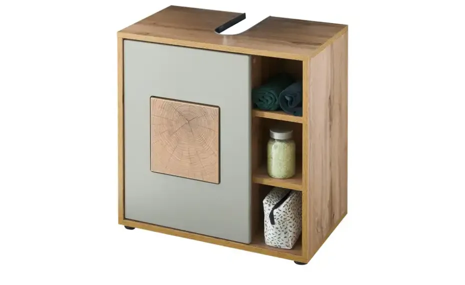 Waschbeckenunterschrank Gremminer See | Eiche (Nachbildung), Grau, holzfarben