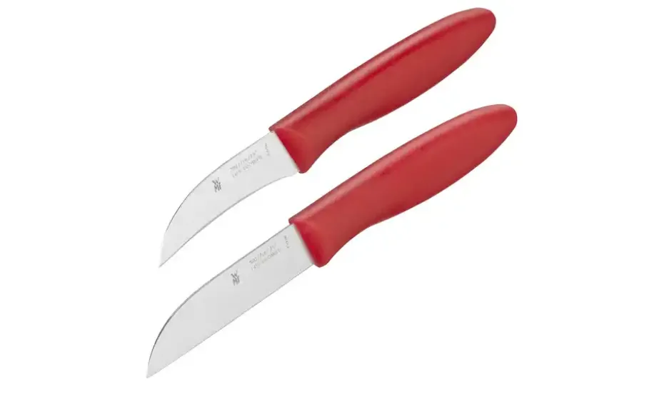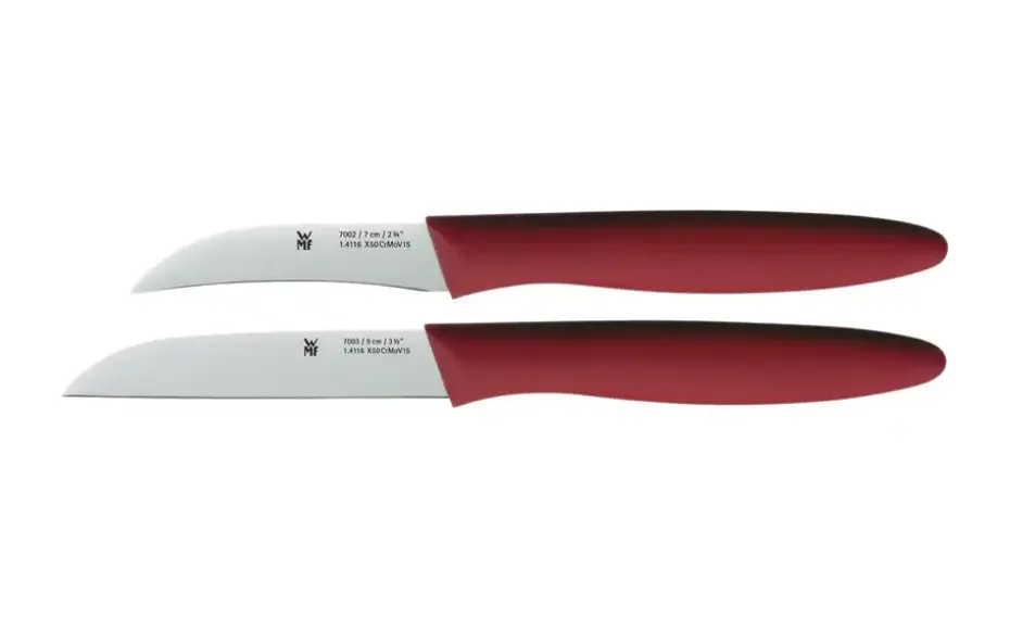 Ideal für den Küchenalltag, zum Schneiden und Schälen von Obst und Gemüse und mit leuchtend roten, ergonomisch geformten Griffen für eine sichere und komfortable Handhabung: Das 2-teilige Gemüsemesser-Set von WMF. Das Set besteht aus einem Gemüsemesser mit 7 cm Klingenlänge sowie einem Schälmesser mit 9 cm langer Klinge – jeweils gehärtet und mit lange anhaltender Schärfe und Langlebigkeit überzeugend.