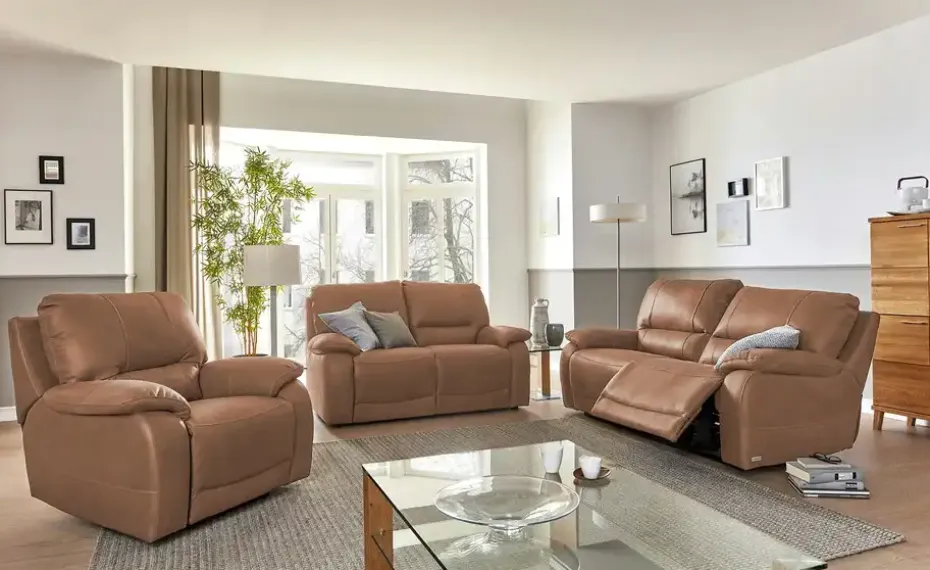 Für eine Siesta zwischendurch eignet sich der Relaxsessel Adelma optimal. Der Sessel ergänzt Ihr persönliches Einrichtungskonzept dank des natürlichen Designs. Bei diesem Polstermöbel können Sie auf die ausgezeichnete Wohnwert-Markenqualität vertrauen. Die Sitz- und Rückenfläche des Sessels bietet durch ihren Überzug aus Leder ein angenehmes Sitzgefühl. Das Modell Adelma lädt auch aufgrund des Gummigurtbandes sowie der komfortablen Polsterung aus PUR-Schaum zum Relaxen ein. Ein Gestell aus Kunststoff bildet die Basis des Sitzmöbels. Das Gesamtstellmaß des Sessels ist 108 x 98 x 103 cm. Nehmen Sie Platz, lehnen Sie sich zurück und genießen Sie die Entspannung auf diesem Möbelstück.