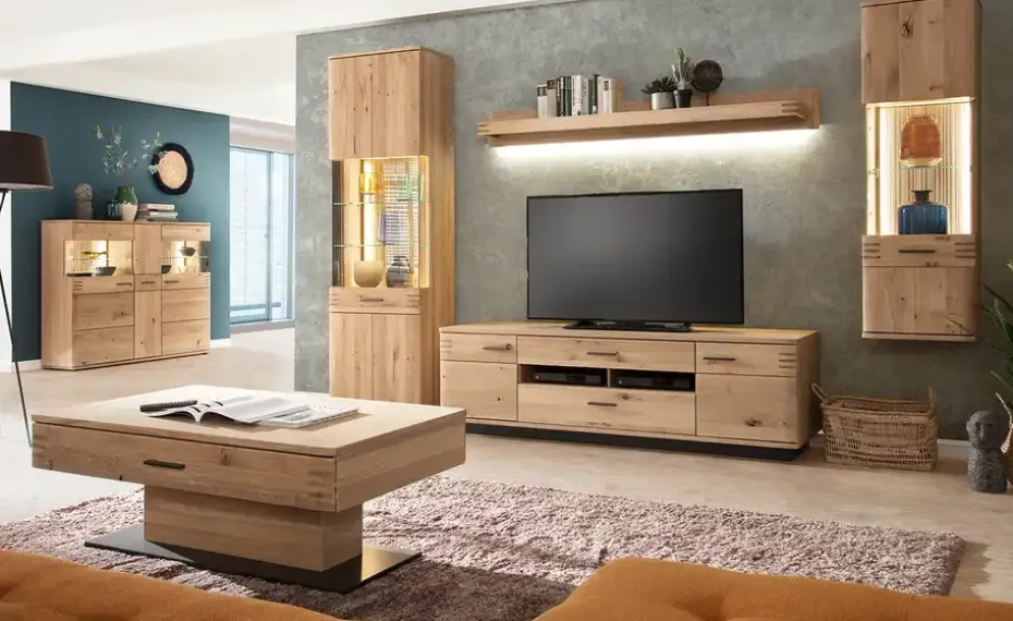 sichtbare Rückwand aus Eiche massiv strukturiert
